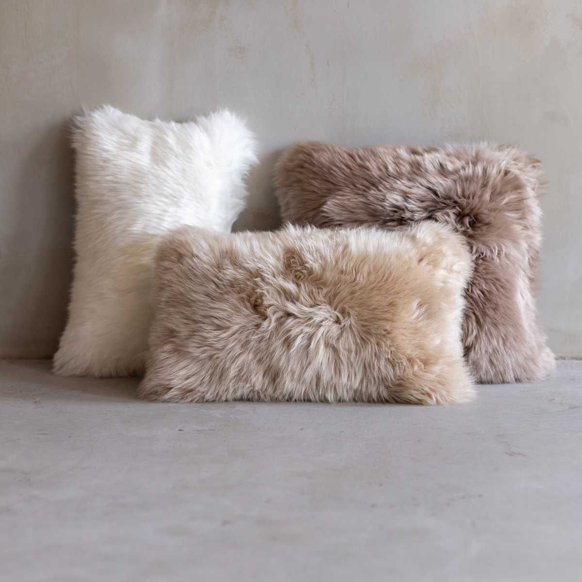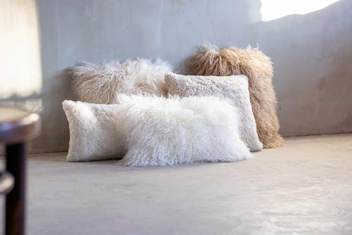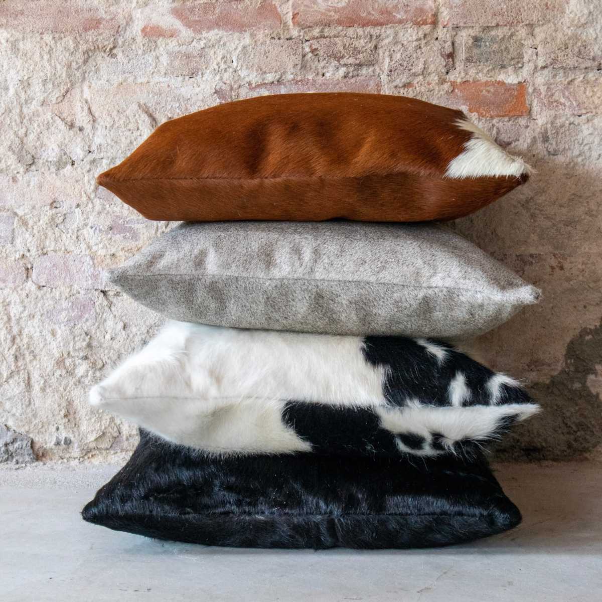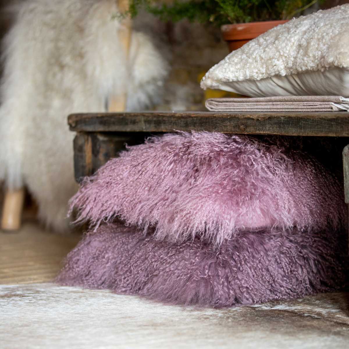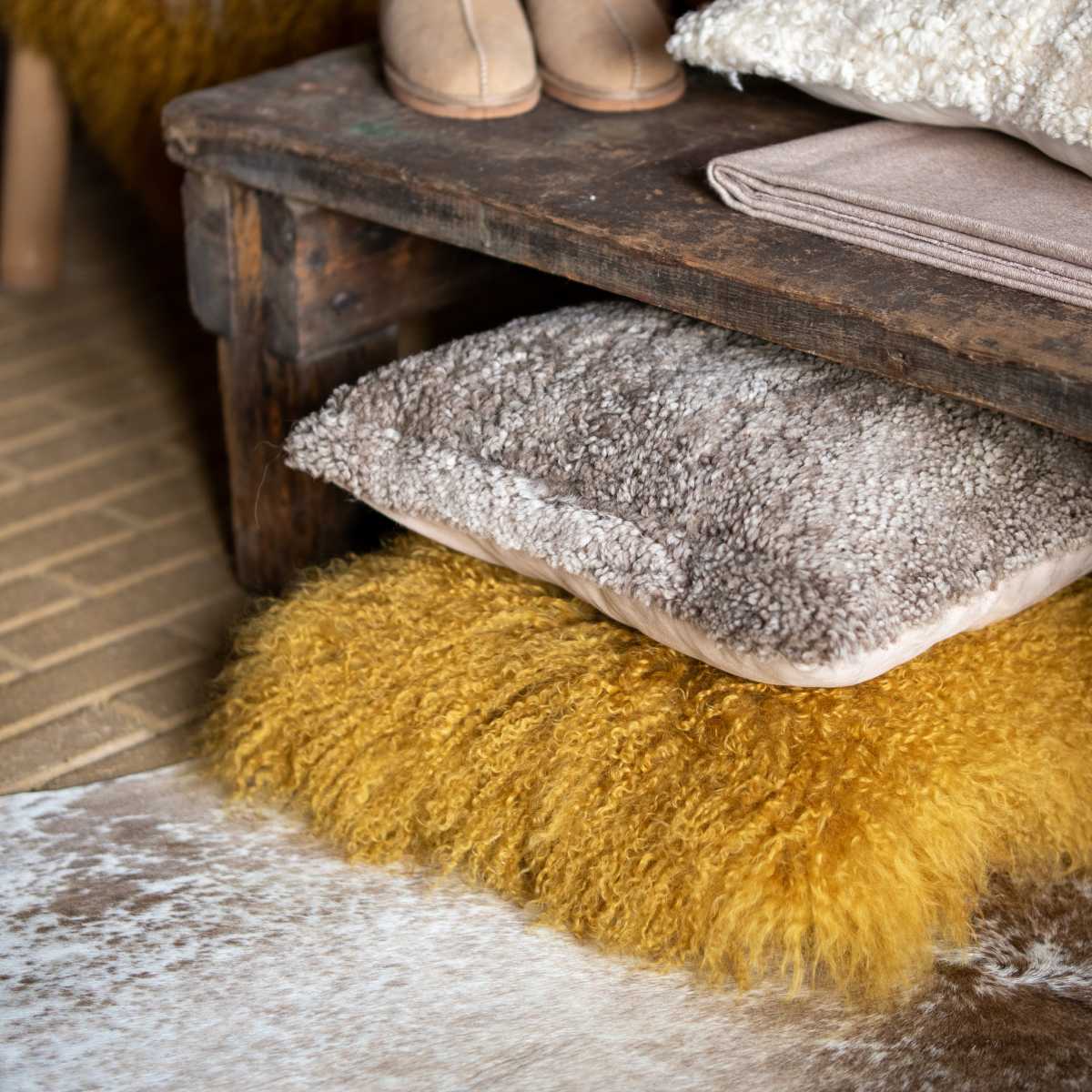 Van vachten maken wij in ons atelier kussens in schapenvacht, koeienhuid en nerfleder. Ze zijn leverbaar in verschillende maten en kleuren.